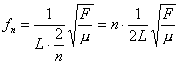 Po podstawieniu n = 1 otrzymamy częstotliwość pierwszej harmonicznej (tonu podstawowego):