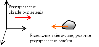 zero, ale także przyspieszenie w układzie obserwatora jest równe zero.
