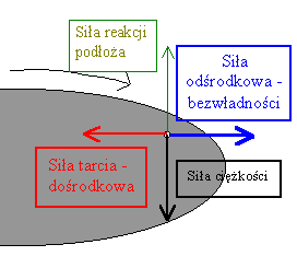 Da się tu wyróżnić 3 siły działające na kierowcę: