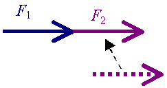 Obliczanie siły wypadkowej - przypadek 1Siły działające wzdłuż jednej prostej i zgodnie skierowaneZałóżmy, że początkowo mamy dwie siły: F1 i F2, które mają taki sam kierunek i zwrot, choć mogą różnić się wartościami.