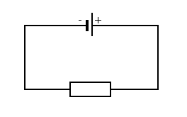 Na rysunku przewody doprowadzające mają postać kresek, opornik (odbiornik prądu) oznaczony jest przez mały prostokąt, źródło zaś symbolizowane jest przez dwie kreski prostopadłe do przewodów (dłuższa cienka kreska oznacza biegun dodatni, a krótsza grubsza – ujemny). W przypadku, gdy źródło prądu nie jest określone jak typowe ogniwo (może to być np. zasilacz, czy jakiś inny układ elektroniczny) stosuje się też jego oznaczenie w postaci samych zacisków.