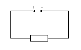 Najprostszy obwód z prądemWeźmy pod uwagę najprostszy możliwy obwód zawierający źródło prądu i jeden odbiornik (opornik) w którym wydziela się energia elektryczna czerpana ze źródła. Założymy tu dodatkowo, że nasze źródło prądu jest źródłem doskonałym stałonapięciowym – tzn. dostarcza nam prąd o stałym napięciu bez względu na wartość oporu do niego podłączonego.