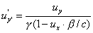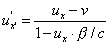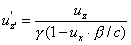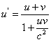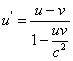 Relatywistyczna transformacja prędkościZałóżmy, że mamy cząstkę, której prędkość w układzie nieprimowanym dana jest przez u. Prędkość względna układów wynosi (jak w transformacji Lorentza) v.