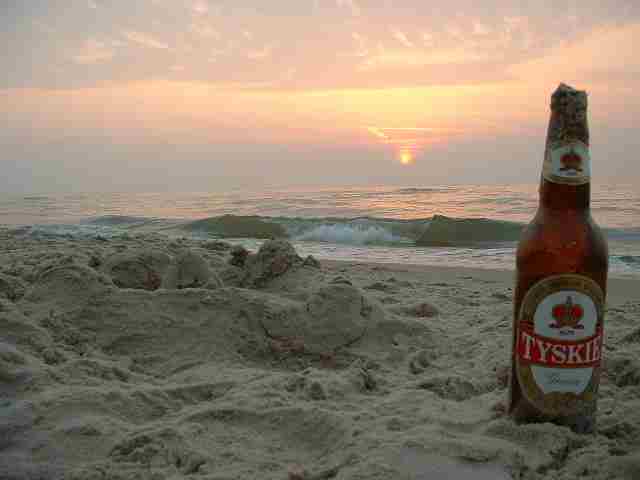 Morze7.JPG (27603 bytes)Butelka postawiona na plaży. To mi się kojarzy. Powiecie pewnie, że była ostra libacja, albo że jakieś szczególne spotkanie w romantycznym stylu. Nic z tych rzeczy. Historia tego zdjęcia jest taka, że po prostu nie miałem już miejsca na karcie pamięci w aparacie. Dlatego ustawiłem go na robienie najbardziej oszczędnych pamięciowo fotek w rozdzielczości VGA 640x480. Ale byłem nad morzem i był zachód słońca. I leżała jakaś pusta butelka. Więc ją postawiłem i wycelowałem obiektyw. Wyszło śmiesznie. Nawet później pomyślałem sobie, żeby pomysł sprzedać jakiejś agencji reklamowej tworzącej reklamy piwa. Lubię to zdjęcie, choć pewnie nie jest ono jakieś nadzwyczajne.