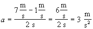 Jeżeli prędkość ciała wzrosła od prędkości 1m/s do prędkość 7m/s w ciągu 2 sekund, to średnie przyspieszenie ciała wyniosło: