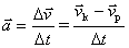 Aby znaleźć wektor przyspieszenia należy wektor zmiany prędkości podzielić przez czas w jakim ta zmiana się dokonała.