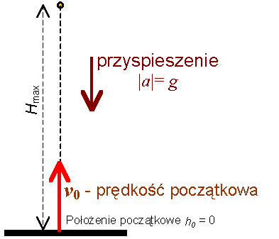 Wzory opisujące rzut pionowyWzory na prędkość i osiągniętą wysokość: |