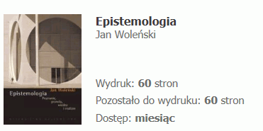 PodsumowaniePodsumowując - uważam, że dla osób zainteresowanych tematem teorii poznania, a w szczególności studentów filozofii, pracowników naukowych zajmujących się tą dziedziną, czy też filozofów amatorów Epistemologia wydaje się pozycją wręcz obowiązkową. Z zapoznania się z tego rodzaju dziełem płynie wiele istotnych korzyści intelektualnych, znacząco rośnie ogólna erudycja filozoficzna. Bez Epistemologii naprawdę trudno byłoby samodzielnie dotrzeć do wszystkich tych źródeł, jakie zostały zebrane i przedstawione w owym dziele. Warto więc zapoznać się z tym dziełem, choćby nawet dla samej bogatej bibliografii. Tak więc polecam tę pozycję wszystkim osobom z umysłem filozoficznym. Ja sam bardzo cieszę się, że miałem okazję dostępu do tego Dzieła, za co serdecznie dziękuję Twórcom i Osobom zaangażowanym w funkcjonowanie serwisu ibuk.pl i portalu PWN.