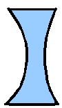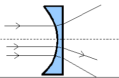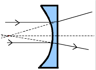 Soczewki wklęsłe sferyczne też są „krojone” sferami, jednak w tym wypadku materiał na soczewkę, tworzy się na zewnątrz sfer. Przykłady soczewek rozpraszających