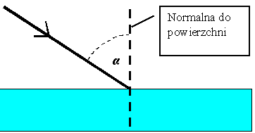 W przypadku biegu promieni świetlnych kąt padania - np. α  też liczymy od normalnej, a nie od samej powierzchni.