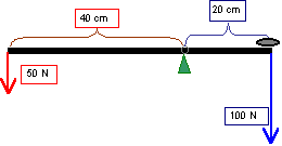 Przek³adnia d¼wigni wynosi tu 2, poniewa¿ ramiê si³y dzia³ania (40 cm) jest dwukrotnie d³u¿sze od ramienia si³y u¿ytecznej (20 cm). Oczywi¶cie dzia³a to dla innych ciê¿arów dla tej d¼wigni, czyli za pomoc± si³y 100 N mo¿na bêdzie podnie¶æ ciê¿ar o 200 N itp.