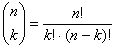 Ilość k elementowych kombinacji zbioru zawierającego n